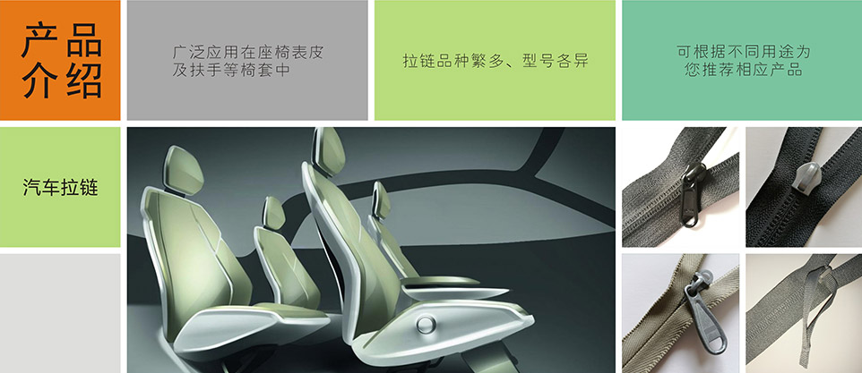 我們提供汽車專用拉鏈、標(biāo)識(shí)扣、標(biāo)識(shí)嘜、粘扣帶/刺毛帶,織帶/松緊帶,塑料扣件等其他汽車內(nèi)飾、汽車座椅系統(tǒng)部件。